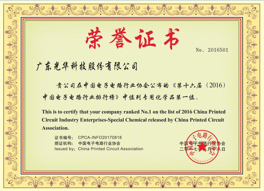 ※連續第7年榮獲中國電子電路行業專用化學品排行榜第1名;