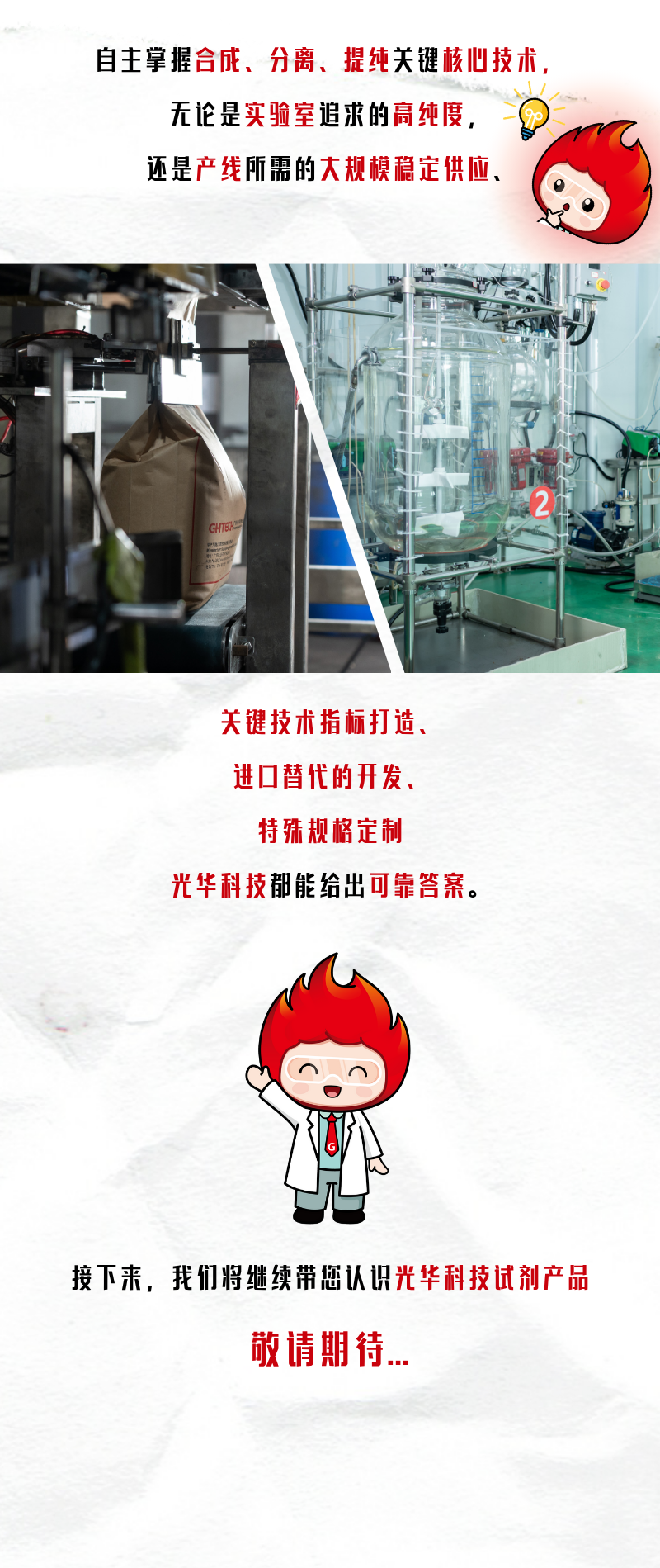 廣東光華科技股份有限公司始創于1980年,集產品研發、生產、銷售和服務為?體,以高性能電子化學品、高品質化學試劑與產線專用化學品、新能源材料和動力電池回收、綜合利用為主導,同時提供其他專用化學品的定制開發及技術服務,致力成為國際高端專用化學品創新與整體技術服務方案領跑者,助力國家技術革新,引領產業鏈高質量發展,持續為全球客戶創造價值!